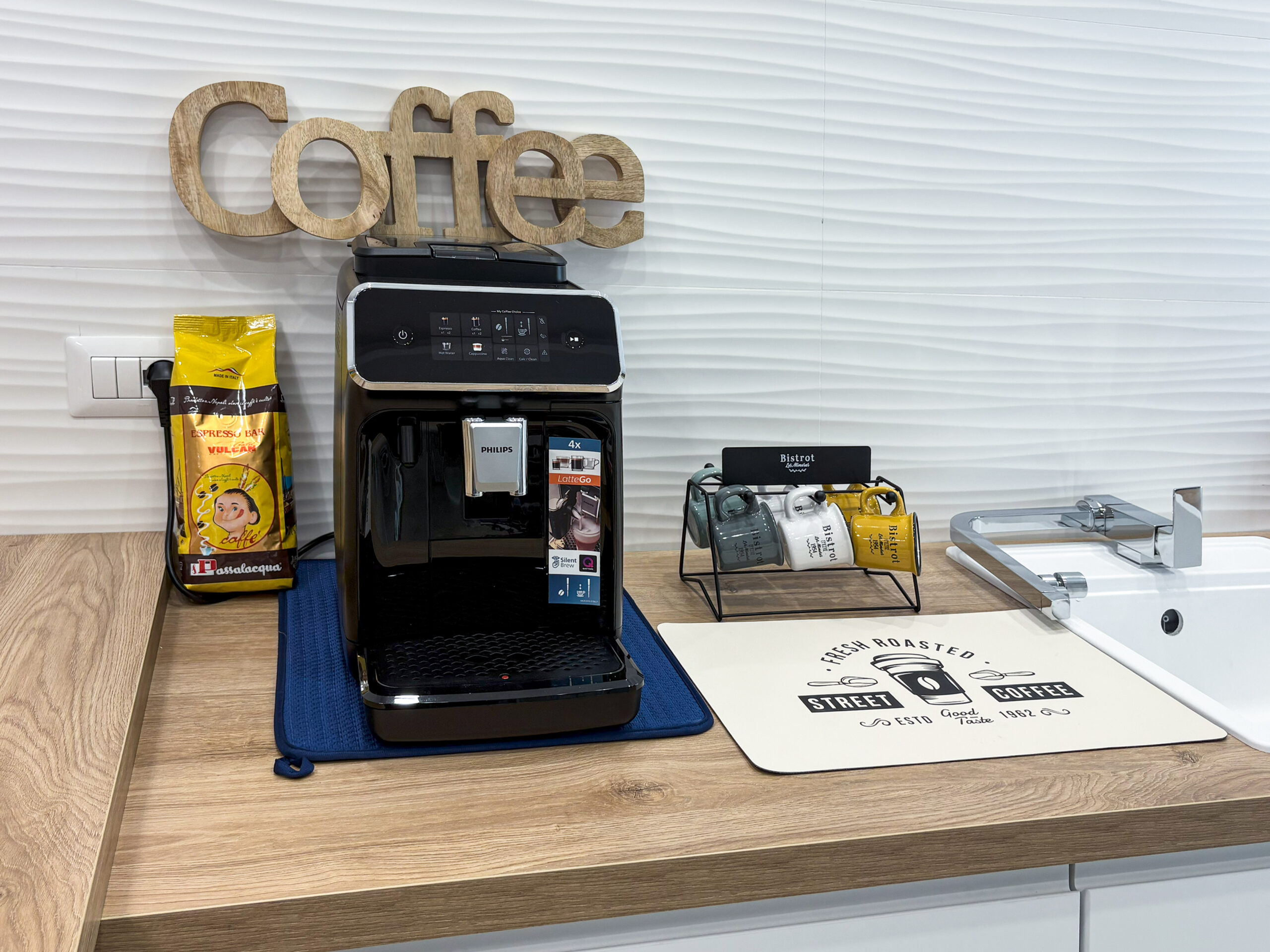 Ogni dettaglio dell’area comune è pensato per farti sentire a casa. A tua disposizione troverai una zona relax con divano e TV, un’area cucina attrezzata con piano cottura, macchina del caffè e frigorifero, oltre a un tavolo conviviale dove gustare un pasto o pianificare la giornata.